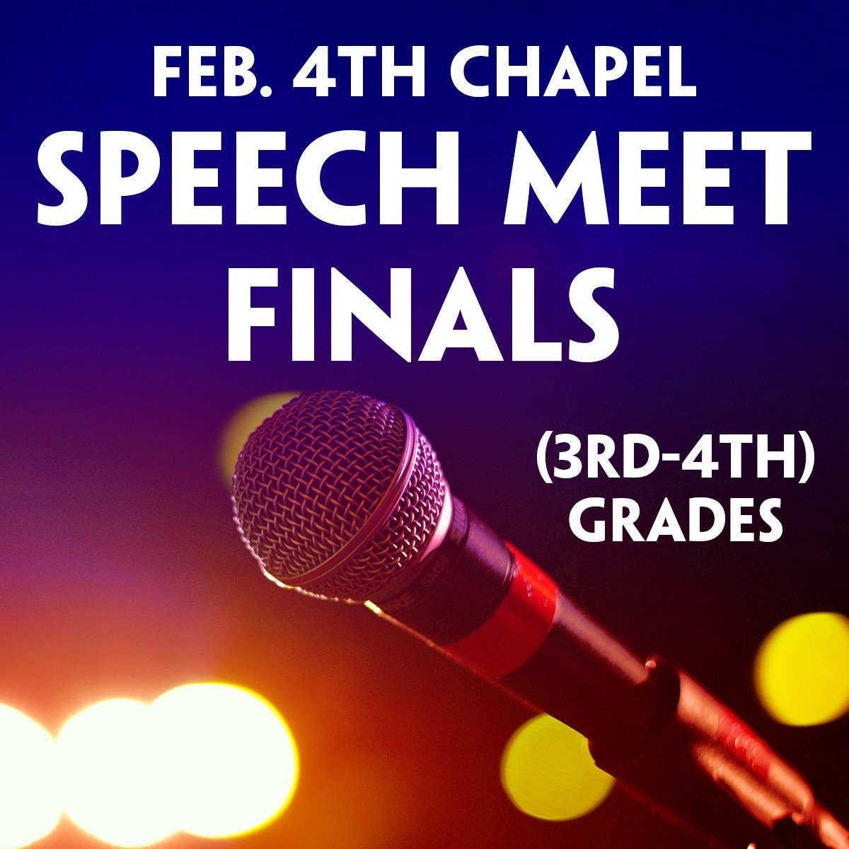 SPEECH MEET FINALS (3rd-4th grade finalists), 8:40 AM in the Worship Center.
